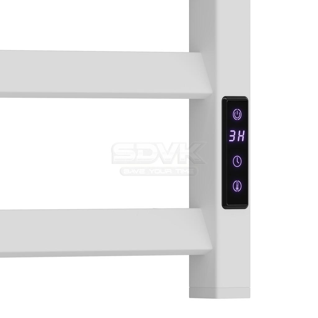 Полотенцесушители Атлант оборудованы новыми сенсорными блоками управления с таймером на 1-8 часов и возможностью регулировки температуры (5 режимов нагрева). Блок управления расположен на правой стойке. Подключение к электросети осуществляется при помощи кабель-вилки или скрытого подключения, которое позволяет легко и просто убрать видимые провода.