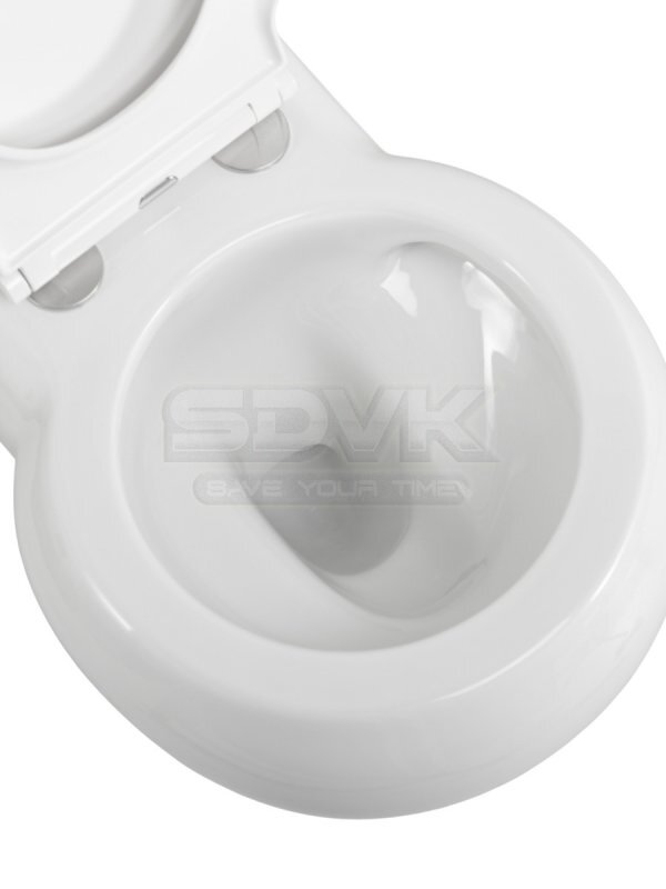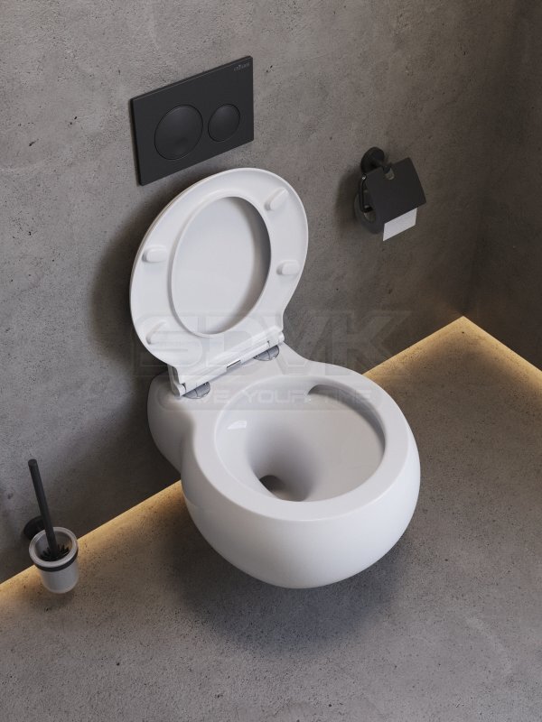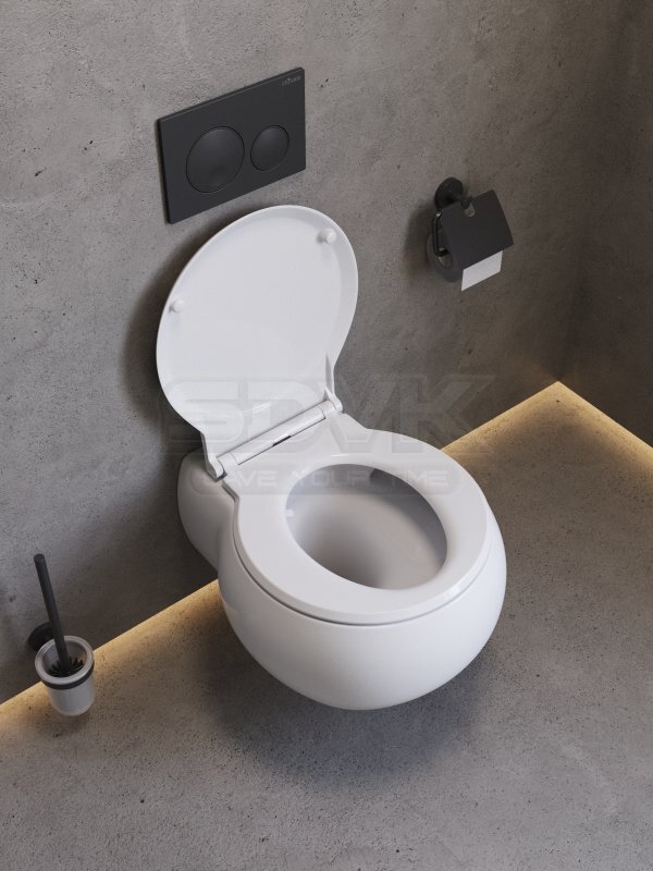 Максимальная гигиена и легкость в уходе: Безободковая конструкция и гладкие обтекаемые формы круглой чаши исключают труднодоступные места, препятствуя скоплению бактерий и упрощая очистку.