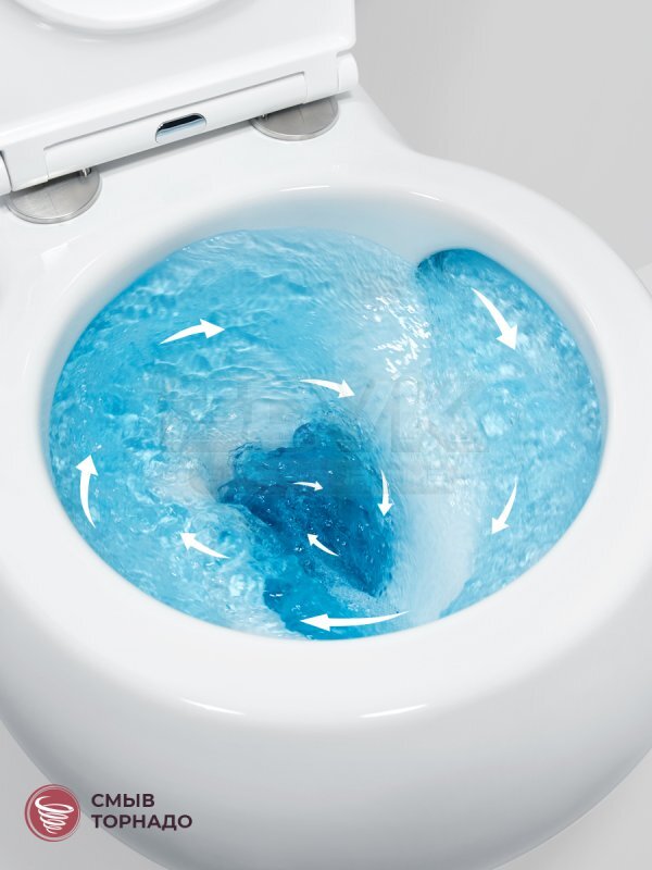 Инновационная очистка Tornado: Мощный водоворот, создаваемый струями воды, бесшумно и эффективно очищает всю поверхность чаши даже при минимальном расходе воды.