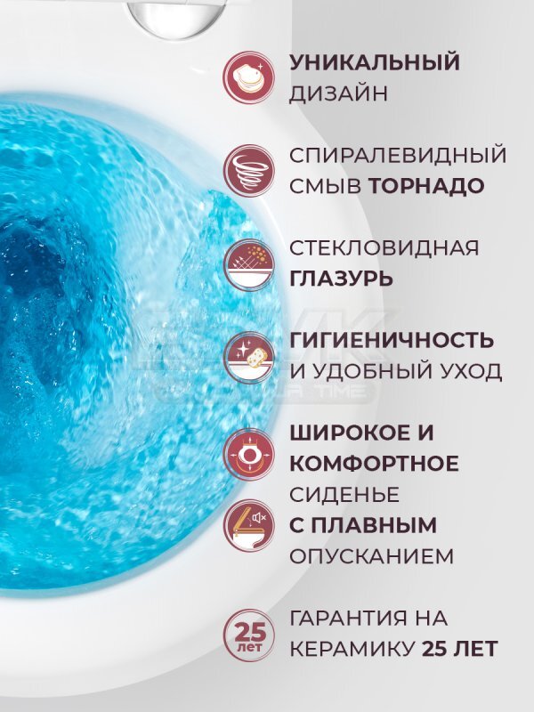 Гарантия надежности на поколения: Санитарная керамика защищена расширенной гарантией производителя сроком на 25 лет, подтверждая исключительное качество и долговечность.