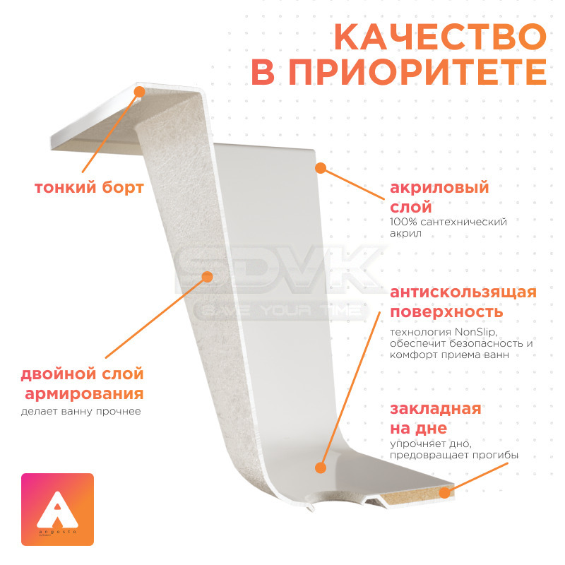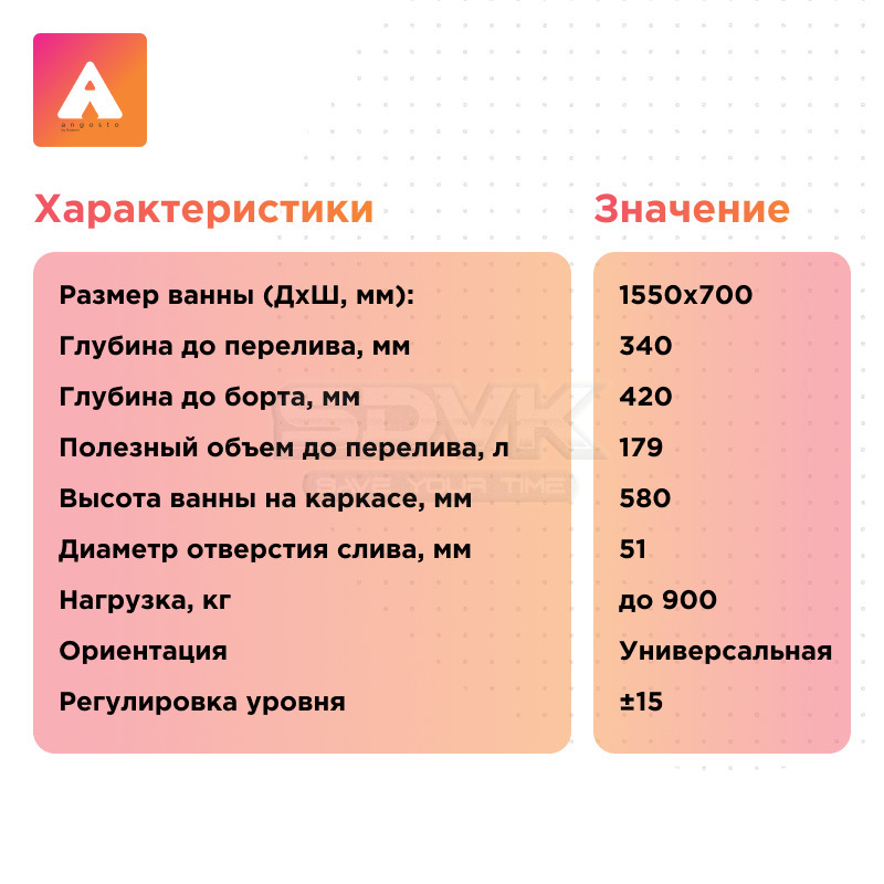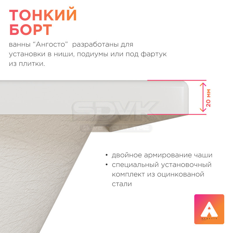 Ванна Виктория лайт Ангосто 155х70 — это надёжный выбор, где продуманная конструкция сочетается с технологиями безопасности и долговечности.